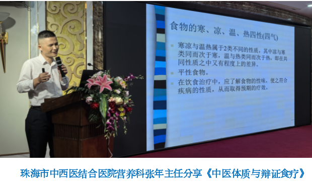 此次会议由协会副秘书长范丽华营养师主持,分为四部分议程。第一部分议程为讲座分享环节,珠海市中西医结合医院营养科张年主任、珠海市中大五院营养科韩宗萍主任、珠海市营养师协会周惠泉执行会长分别带来了主题为《中医体质与辩证食疗》、《预防慢病,管好体重》、《酶肽赋能生命健康》的精彩讲座。三位深耕营养领域的专家以扎实的理论依托,辅以详实的案例佐证,既有科学严谨性,又兼落地实用性,给各位会员朋友们带来一场精彩完美的视听盛宴。
