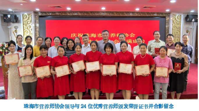 新的一年,四大公立医院营养科主任加入协会大家庭担任副会长职务,为协会注入更加强劲有力的支持。周惠泉执行会长为新聘副会长代表授匾、为增补会员部副部长颁发证书,梁少杰副会长为24位年度优秀营养师颁奖。